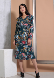 175€This gorgeous fit-and-flare dress presents a seductive V-cleavage, long sleeves and ruffles running from shoulders to the waist. Very Flattering cut, this item highlights any silhouette. Featuring a gorgeous flower print, a dash hippy-retro, this item is suitable for various occasions. It brings real edge to your wardrobe and has the versatility to take you from day to night with lightness and elegance.