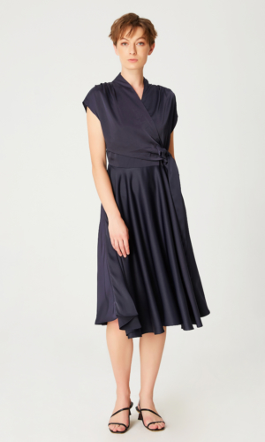 Fit-and-flare wrap-effect satin dress