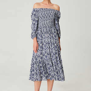 88€A must-have in your summer wardrobe; The dress with smock bust and flared skirt. Cut into a breathable viscose with a geometrical pattern, this is a feminine and comfortable item you can take everywhere. The elasticated neckline allows you to cover the shoulders or bare them.