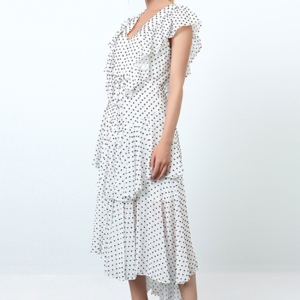 Tired ruffles midi dress with polka dots