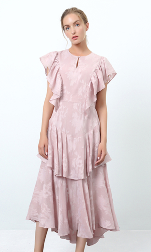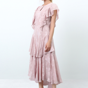 Tired ruffles midi dress with floral veil