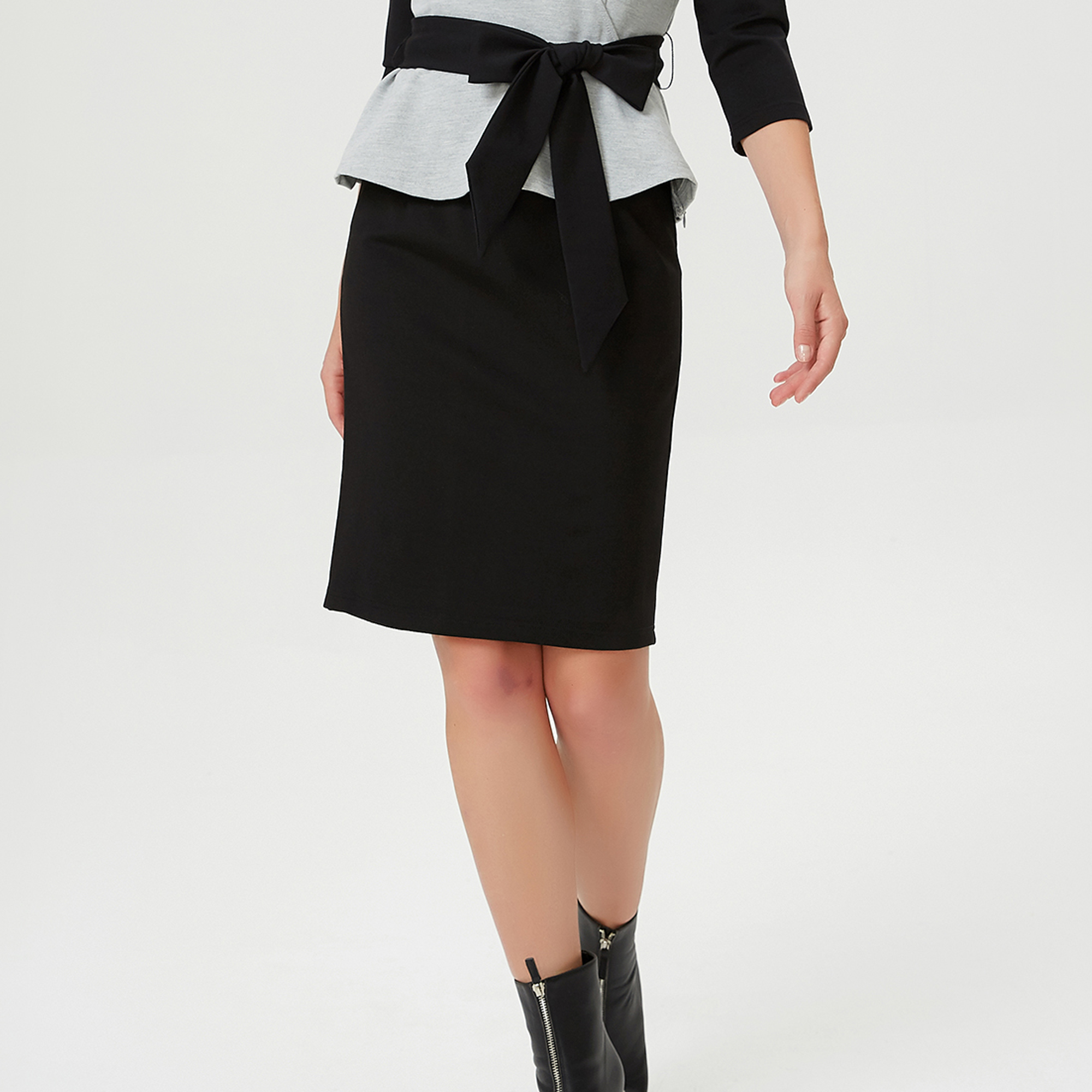Classic and a comfortable, this jersey skirt offers multiple outfit possibilities. Center back vent, straight cut and stretch and thick material. It is an ideal base to showcase any colorful original top. To match with many shoes; boots, stilettos or sneakers. A timeless item to pair also with our ” Color black peplum top with cross-heart effect and belt”