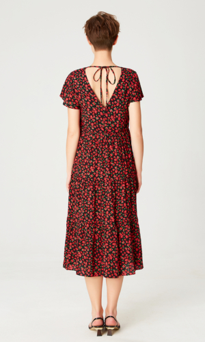 Loose tunic dress with floral print and back cut-out