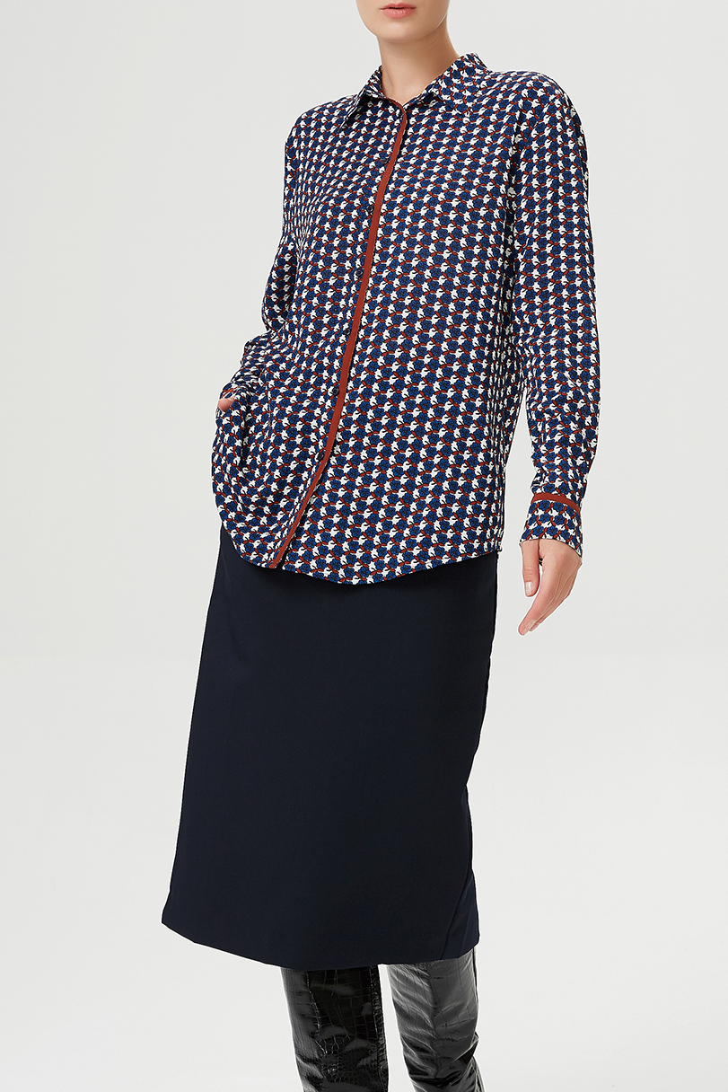 Shirt with contrasting bias and vintage geometric print