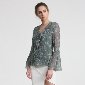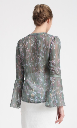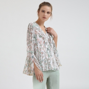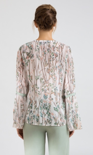 Blouse manches-tulipes en voile imprimé feuilles