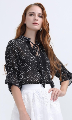 Blouse à manches tulipes en mousseline à pois