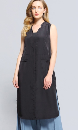 Gilet long bi-matière