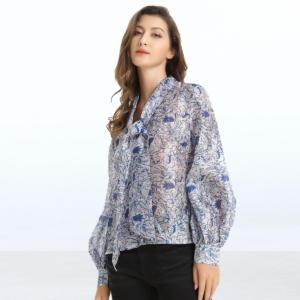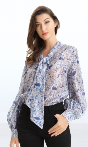 Blouse à manches bouffantes et noeud cravate