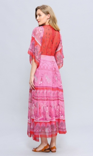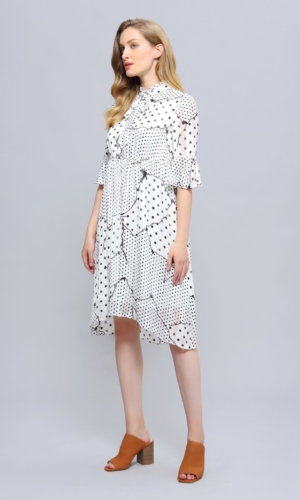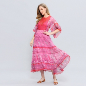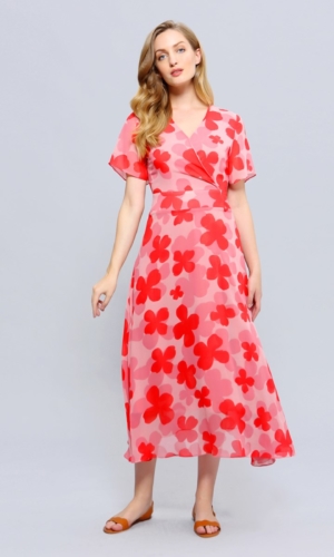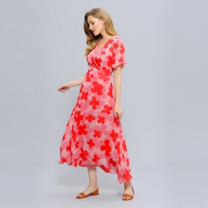 Robe-blouse à volants nivelés et imprimé fleuri macro