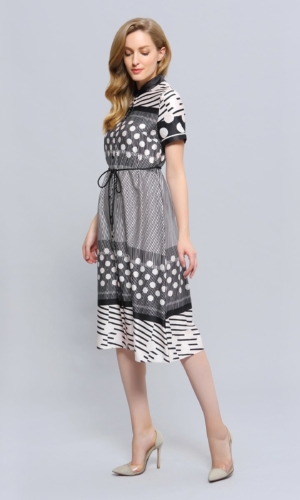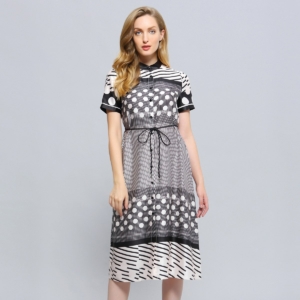 - Matière principale : 100% Polyester pour la version noir et blanc rayée et rose à pois