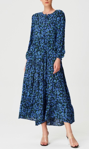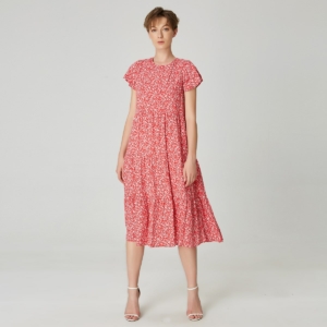Robe-blouse en viscose à volants nivelés et imprimé fleuri