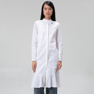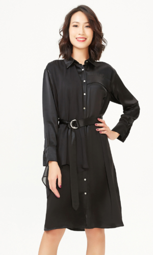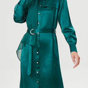 Robe-chemise asymétrique en satin et panneau de mousseline