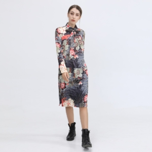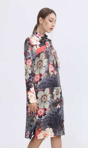 Robe-Chemise bi-matière à imprimé floral linéaire