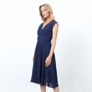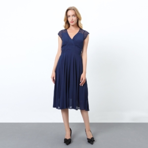 Robe patineuse à empiècement dentelle aux épaules