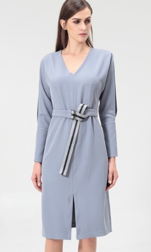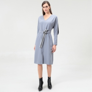Robe chemise coupe évasée à rabat et ouverte dans le dos