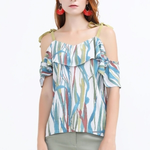Chemise mousseline à manches-tulipe et imprimé abstrait