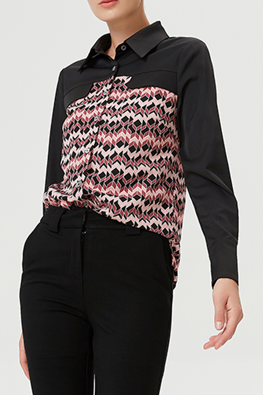 Chemise bi-matières à imprimé géométrique