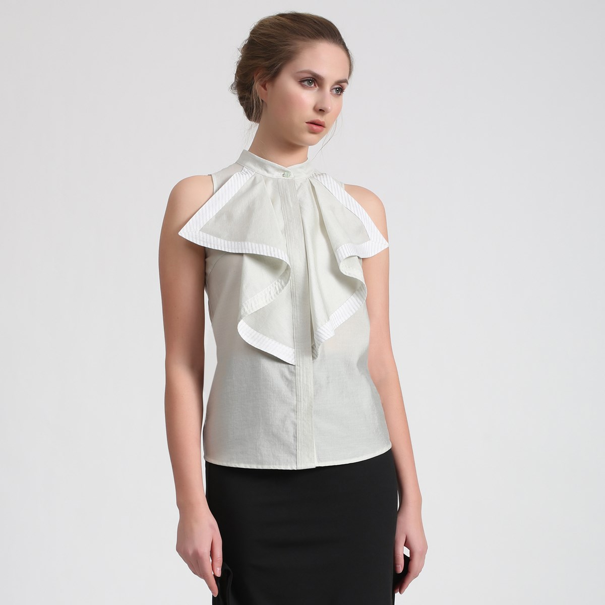 Une coupe sans manches simple rehaussée d’un large col jabot minimaliste et moderne. Cette chemise est confectionnée dans une fine popeline légèrement irisée, et s’accorde à de multiples tenues. Rentrez-la une jupe taille haute avec un blazer ou opter pour une allure plus décontractée par -dessus un jean.