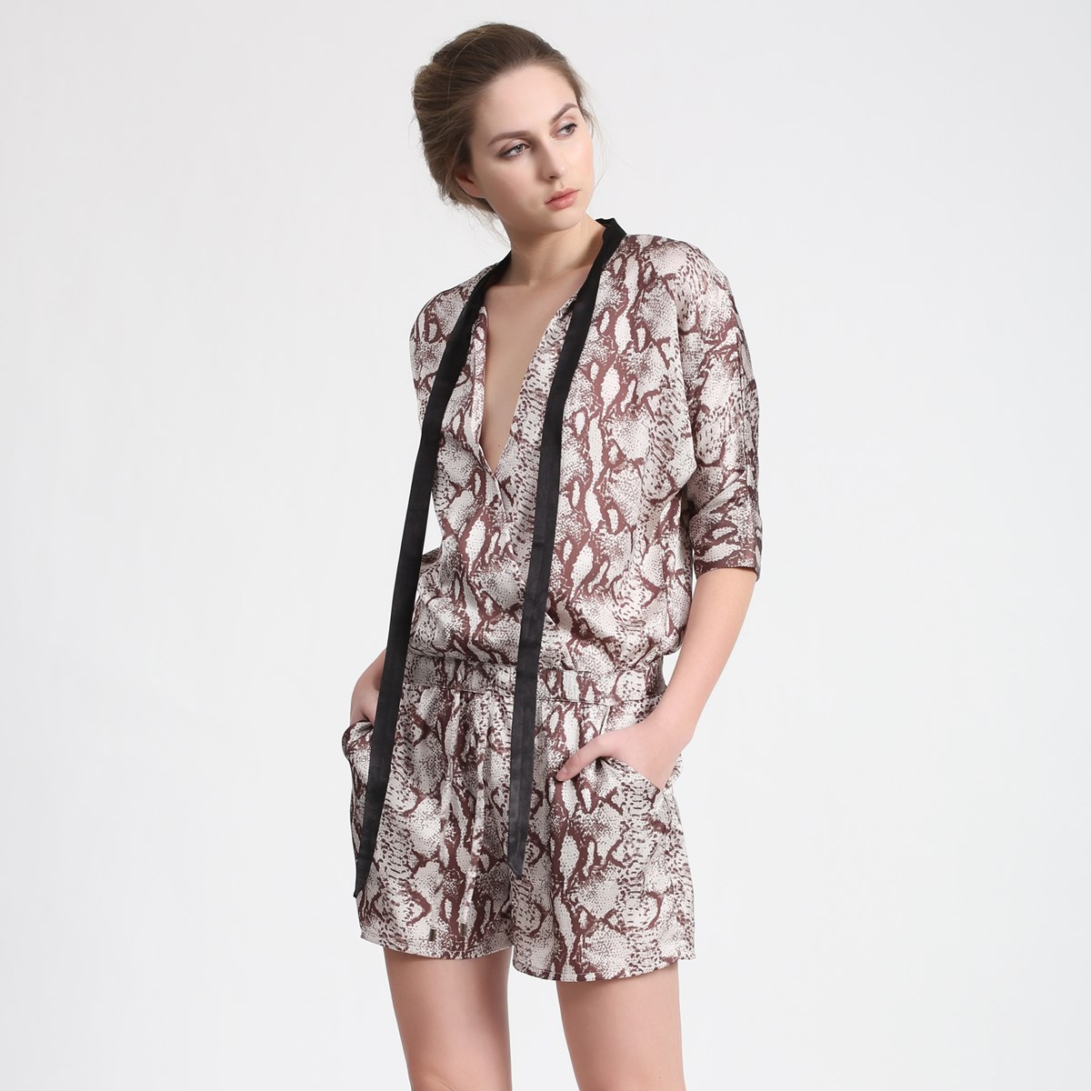 Adoptez un look affirmé et audacieux avec cette combinaison imprimé serpent : Un motif très tendance cette saison décliné sur un tissu satin léger. Une pièce facile à porter avec sa ligne taille basse élastiquée, deux poches côtés, un effet croisé devant. Un col-cravate noir satin ajoute un contraste et une touche sophistiquée à l’ensemble : amusez-vous à le nouer ou le laisser lâche selon votre humeur. Détails produit