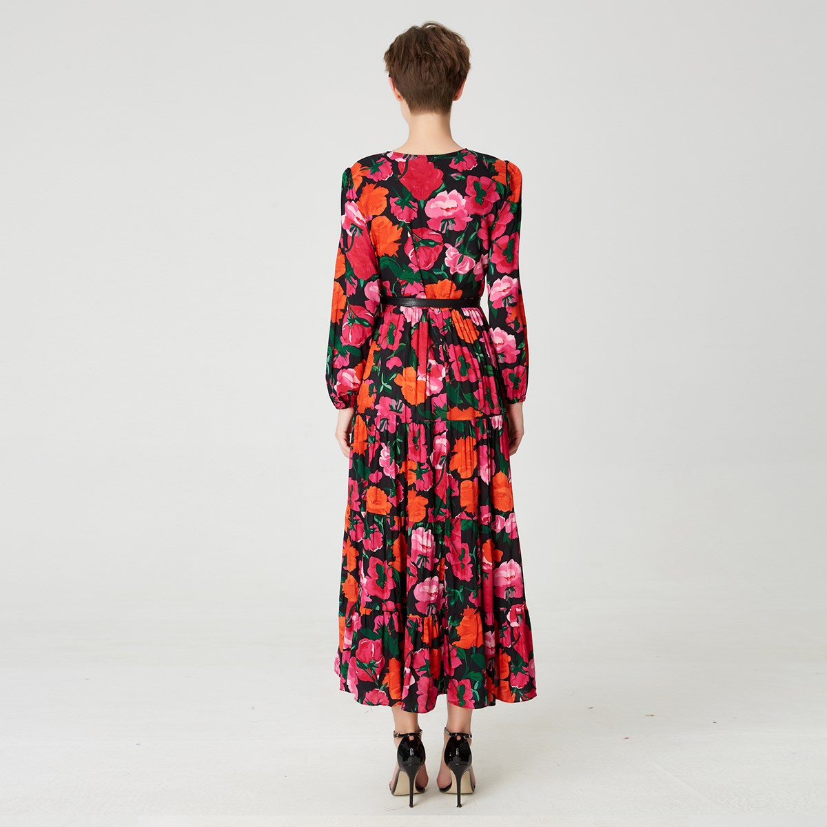 Robe-blouse à volants nivelés et imprimé fleuri macro