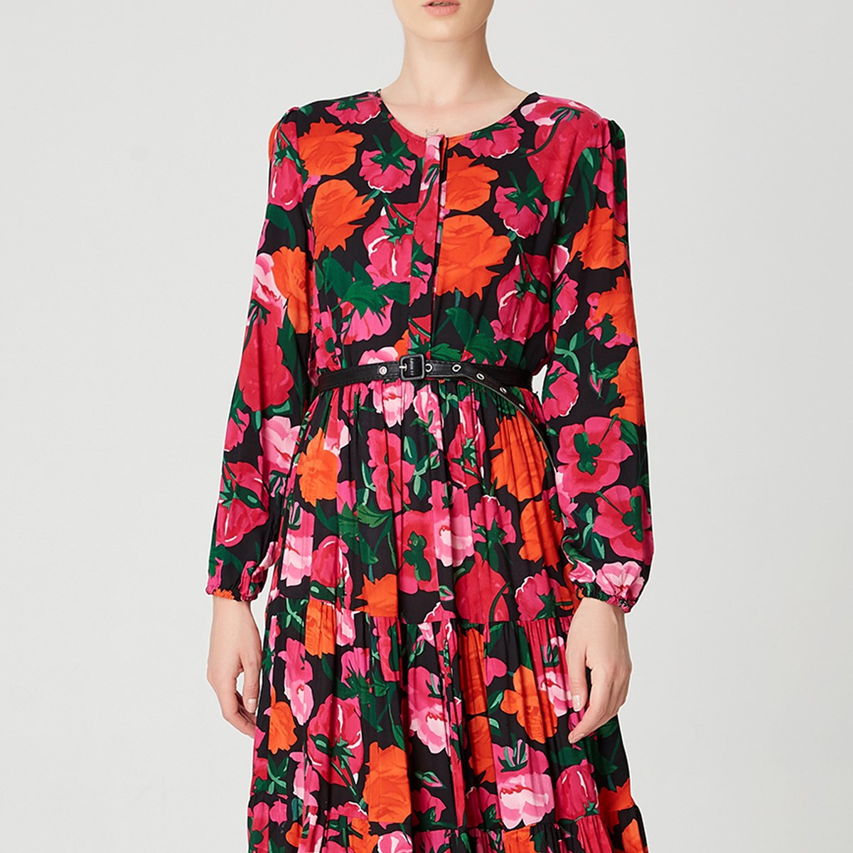 Une pièce colorée à l’imprimé floral qui égaye votre garde-robe. Souligne délicatement la silhouette à la taille et peut être accentué par une ceinture ajoutée. Boutonnage caché milieu devant, volume généreux composé de volants. Un style raffiné et féminin pour cette robe à porter sans modération pour vos escapades en ville comme vos soirées. Versatile, elle s’associe avec des bottes, des bottines, des stilettos ou des ballerines en fonction de votre envie.