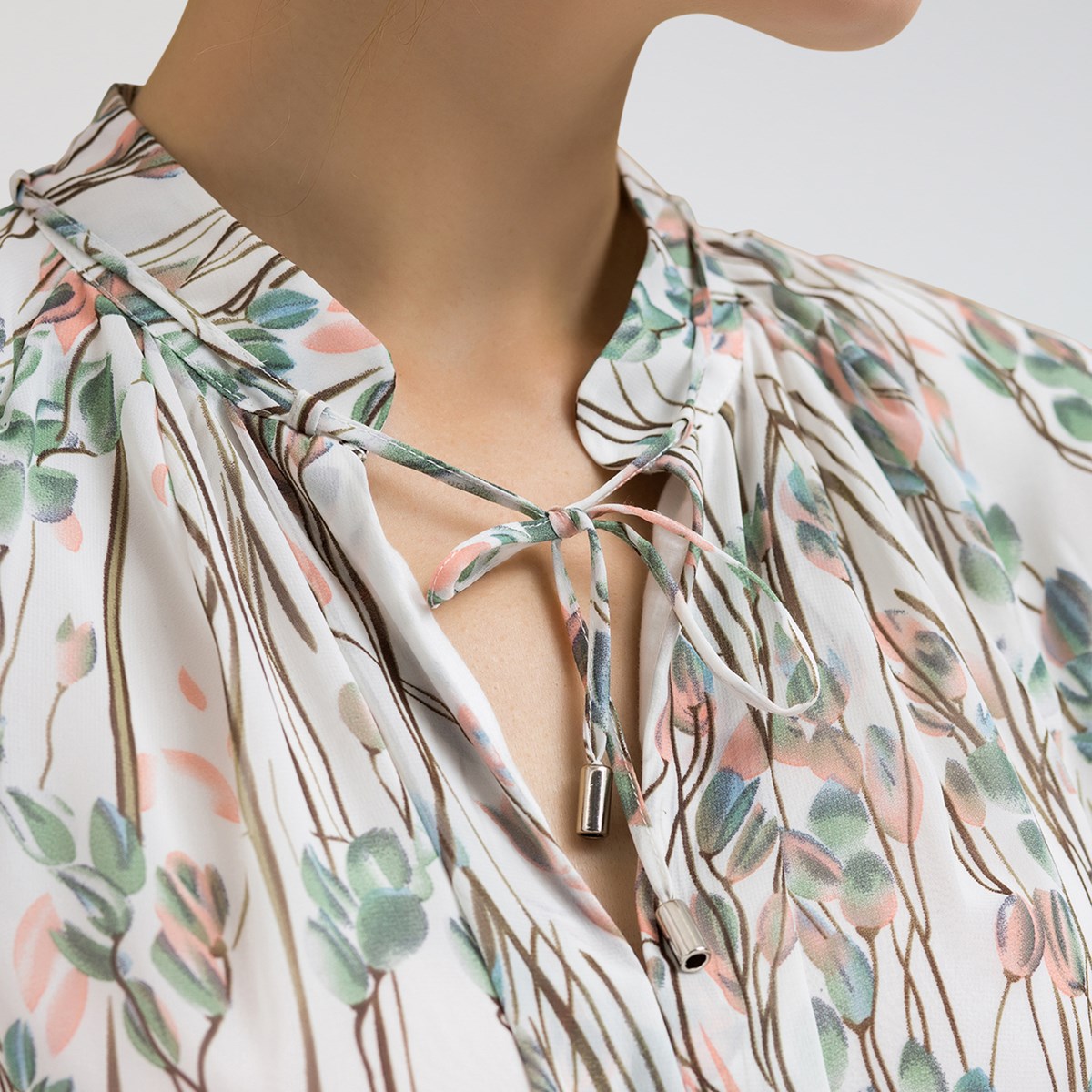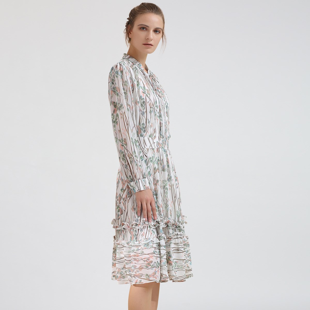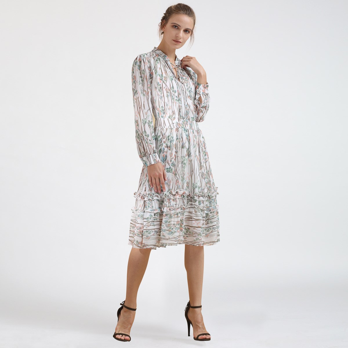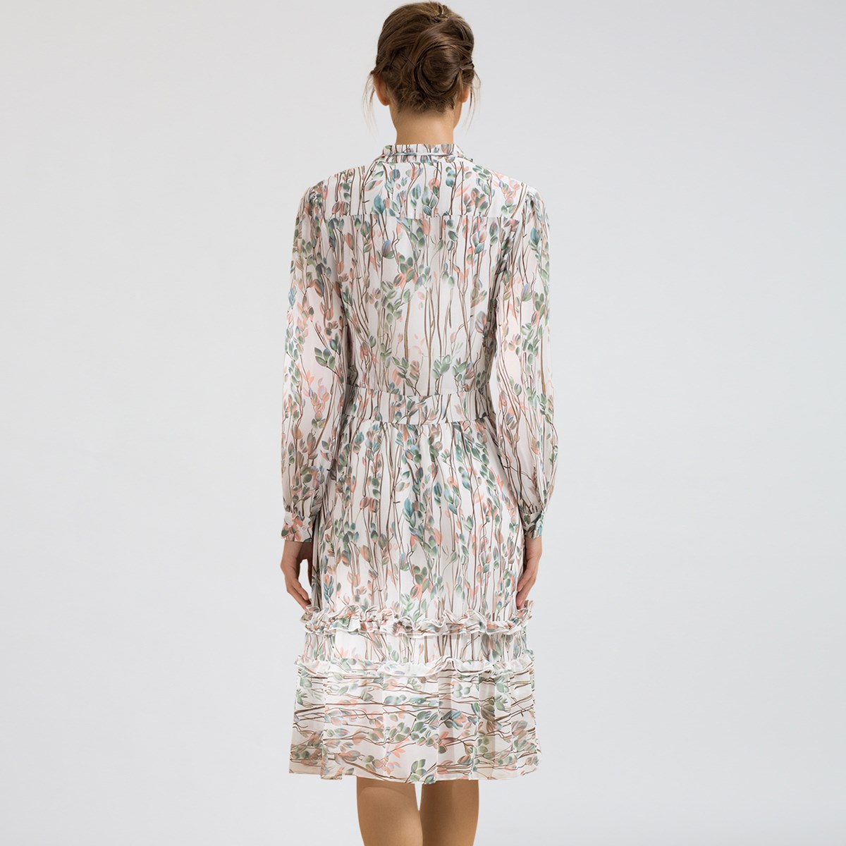 Robe-blouse évasée mi-longue imprimé feuille