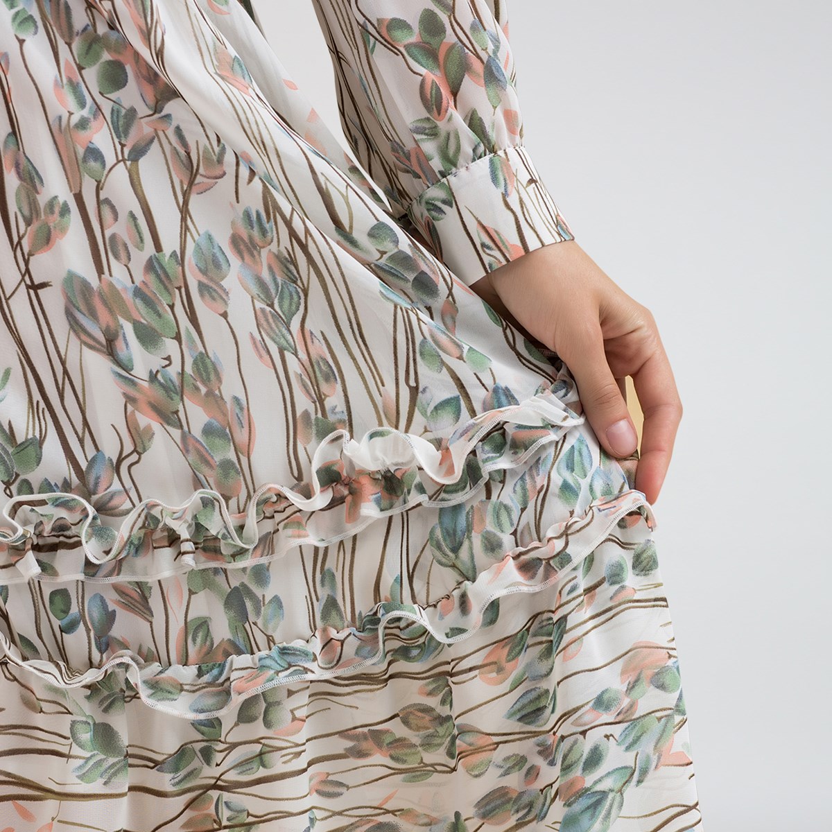 Robe midi en voile texturé et volants