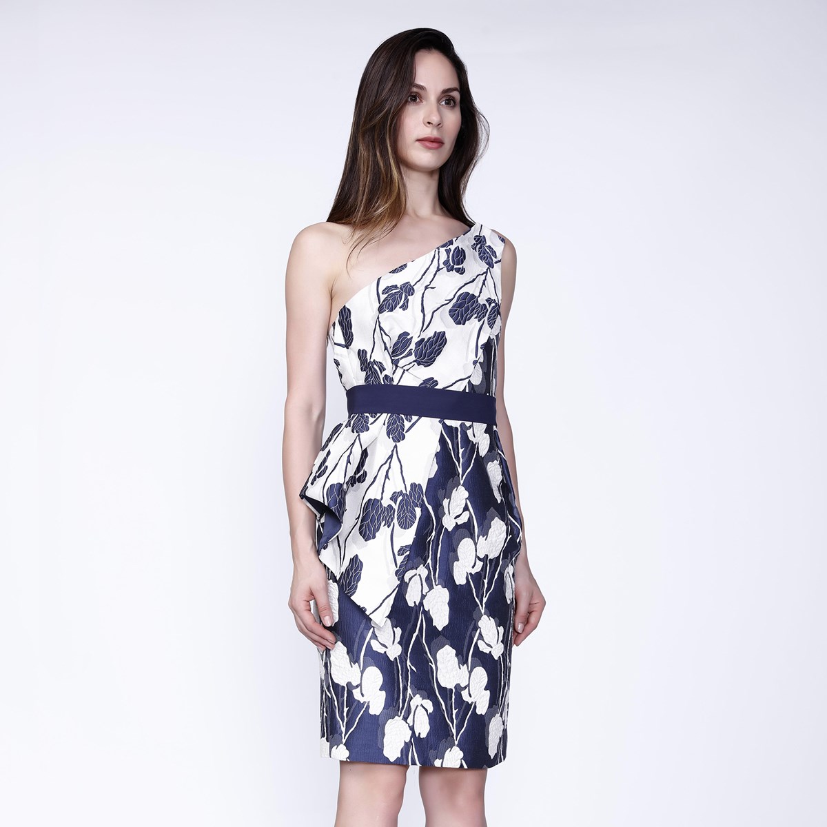 Cette robe arbore un look à la fois glamour et moderne grâce à son jacquard fleuri et sa construction sculpturale asymétrique. Une pièce à exhiber lors votre prochain cocktail ou événement, sortie ou mariage. Forme prêt du corps, bandoulière sur une épaule qui maintien le bustier, ceinture supplémentaire fournie.