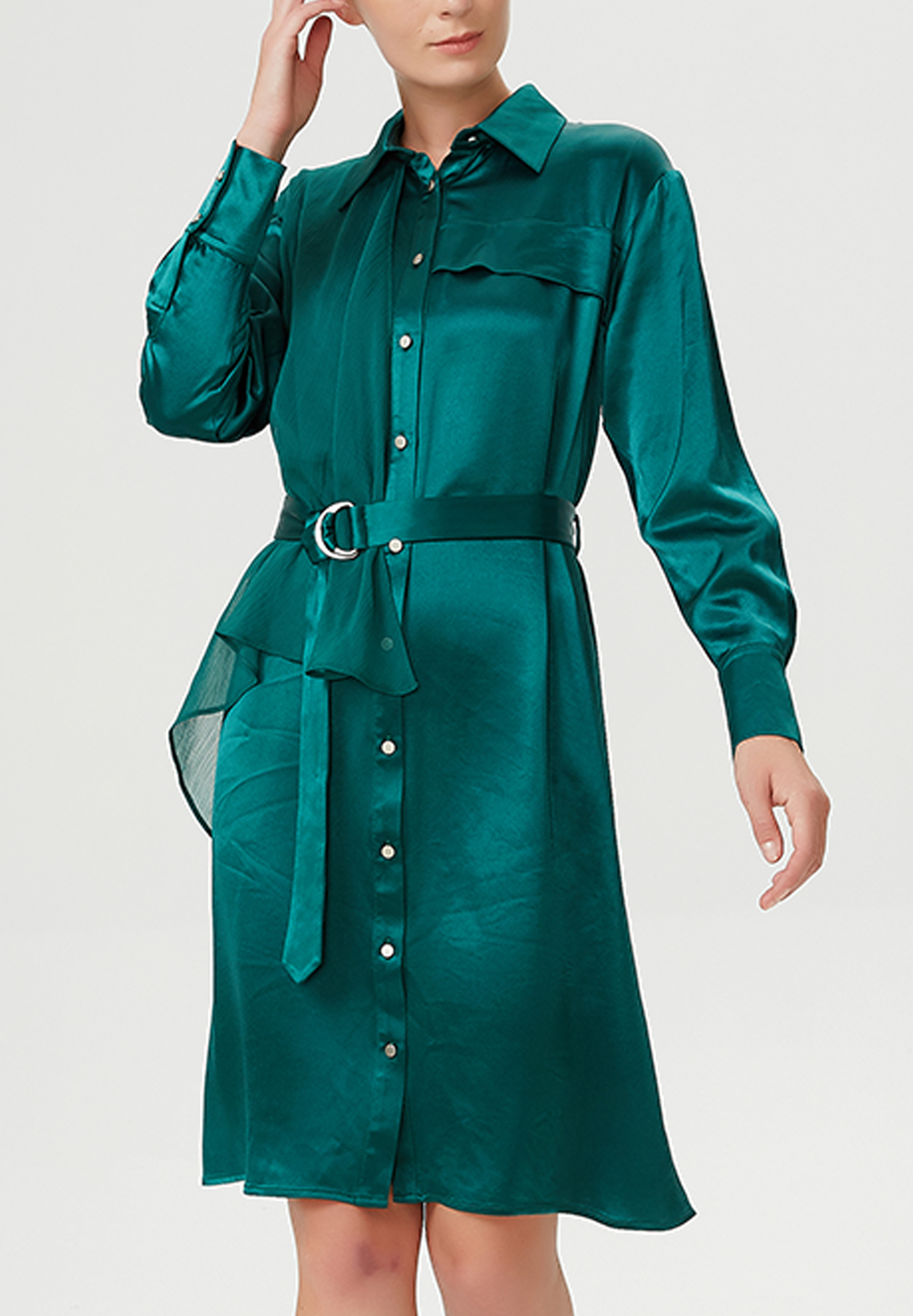 Robe-chemise asymétrique en satin et panneau de mousseline