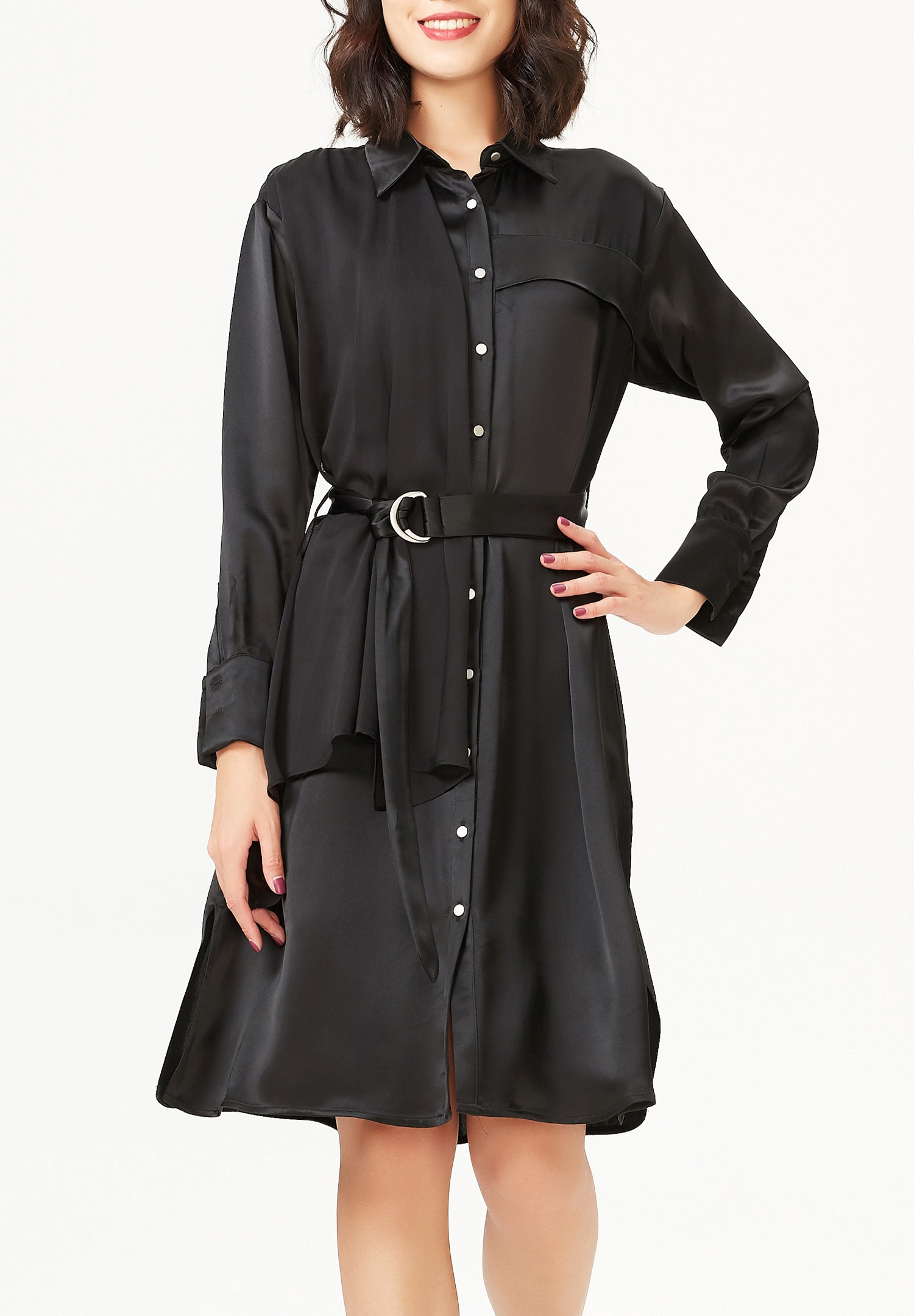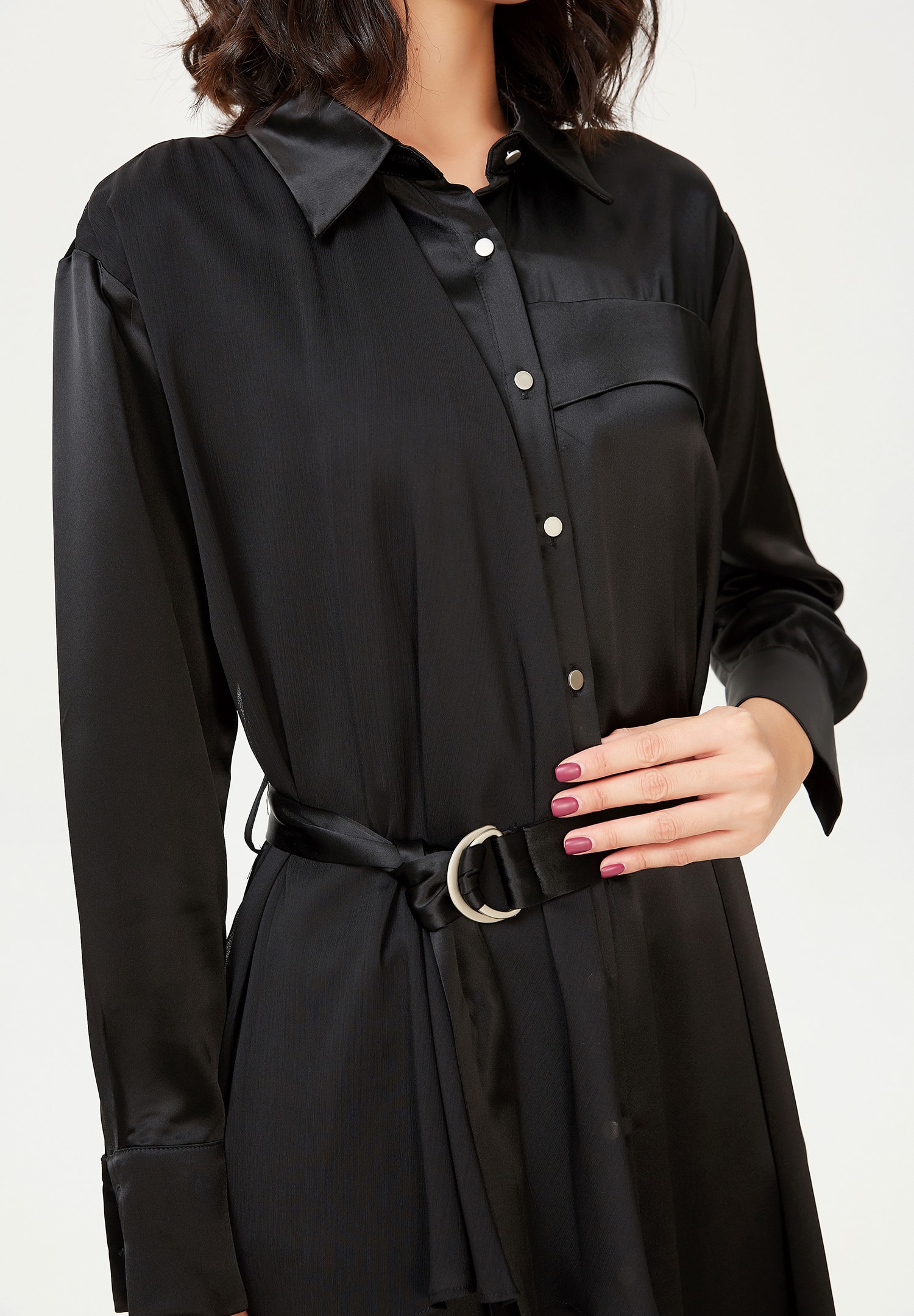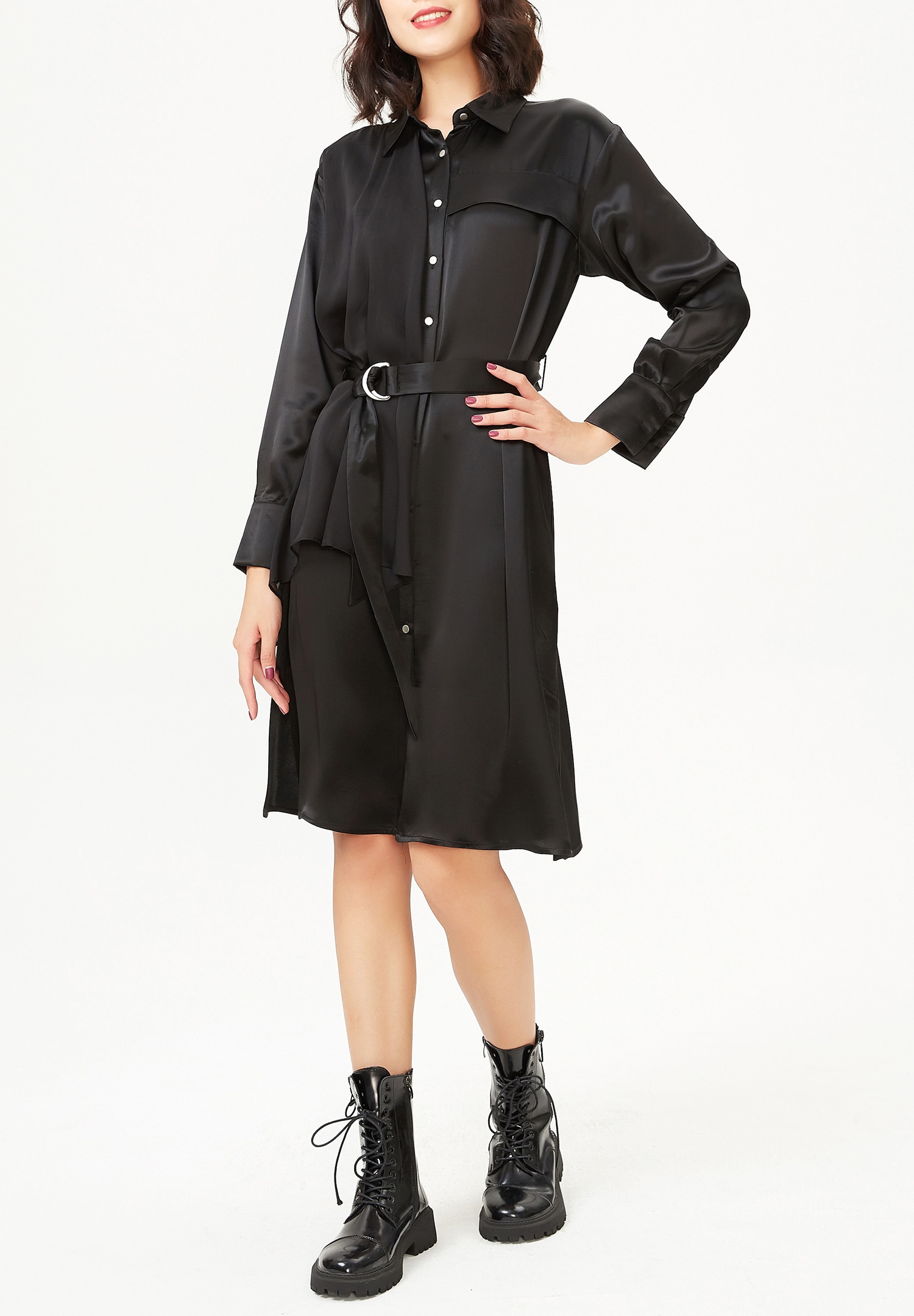 Robe-chemise asymétrique en satin et panneau de mousseline