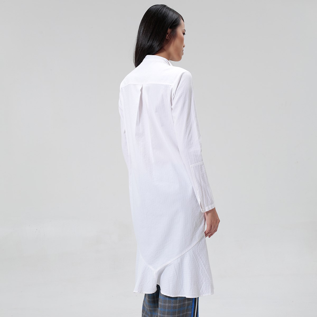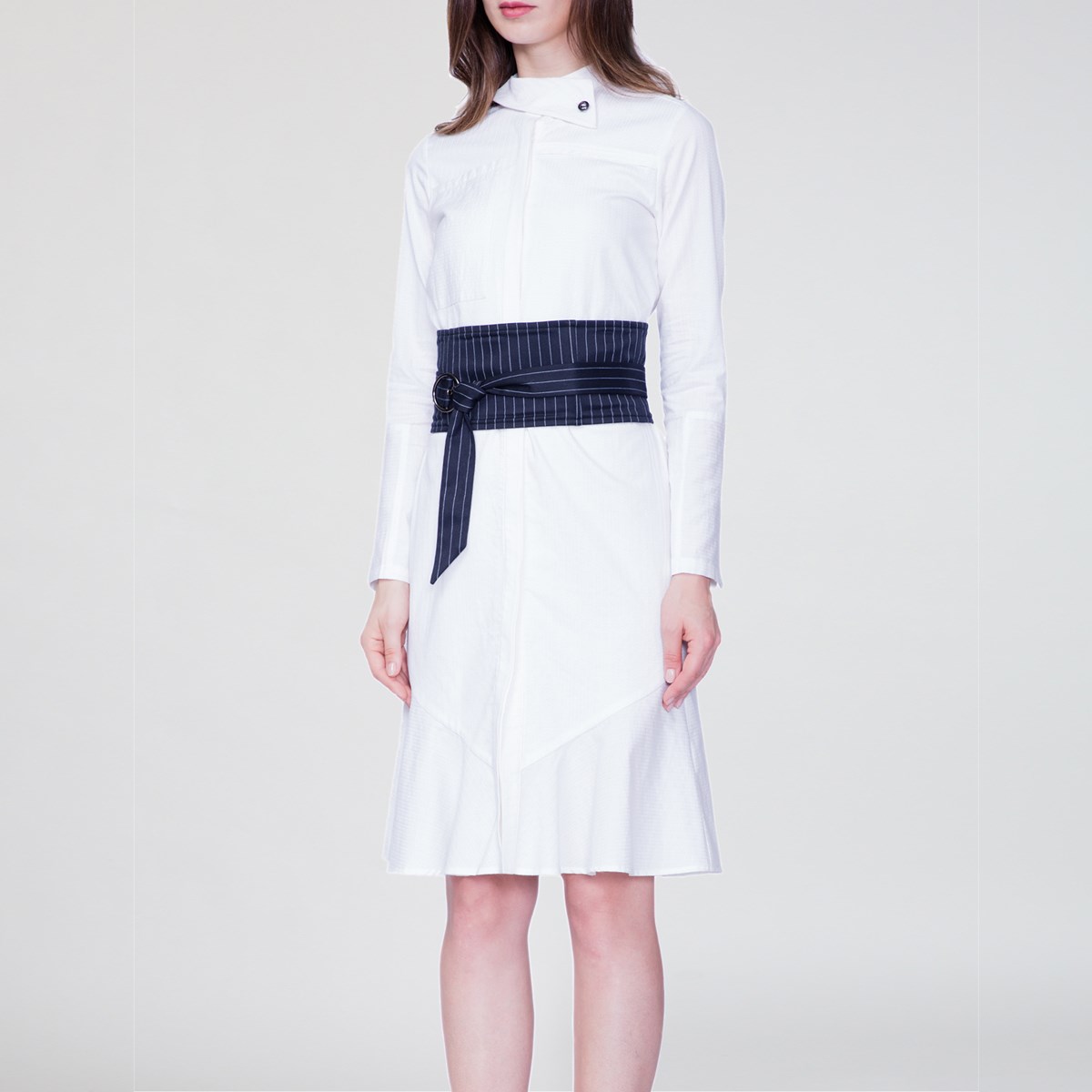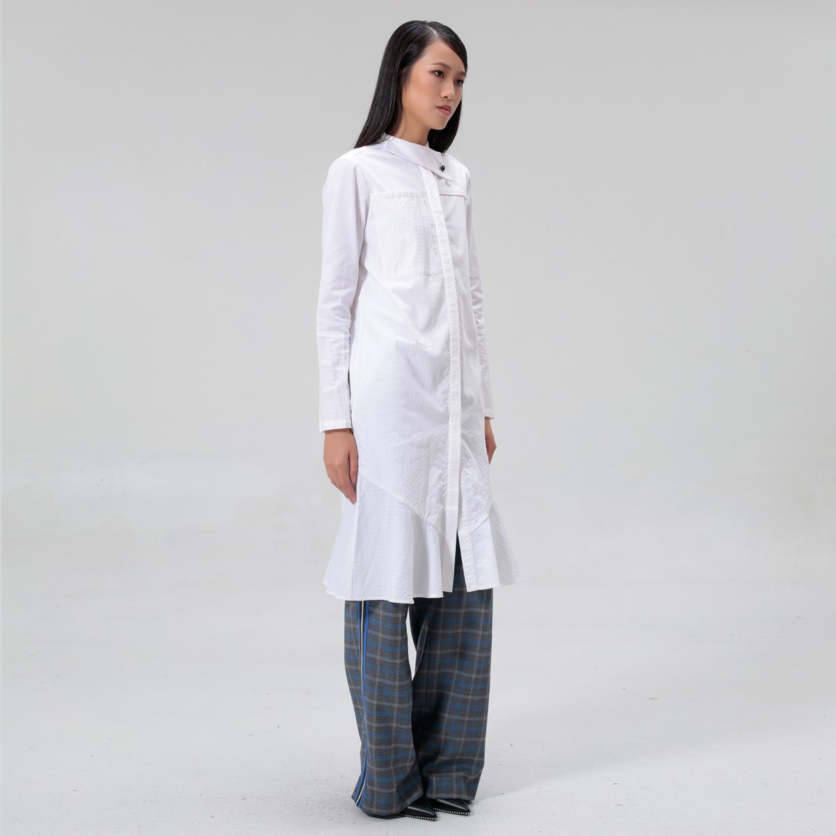 Une allure minimaliste pour cette robe-chemise avec sa coupe de col asymétrique qui apporte une vraie touche d’originalité. Facile à porter pour toutes les silhouettes avec son tombant évasé, vous pouvez soit la porter tel quelle, soit l’accessoiriser avec une large ceinture ou un long gilet. Peut également se porter comme une tunique par-dessus un pantalon ou un leggin. Pour une tenue de jour actuelle et androgyne.