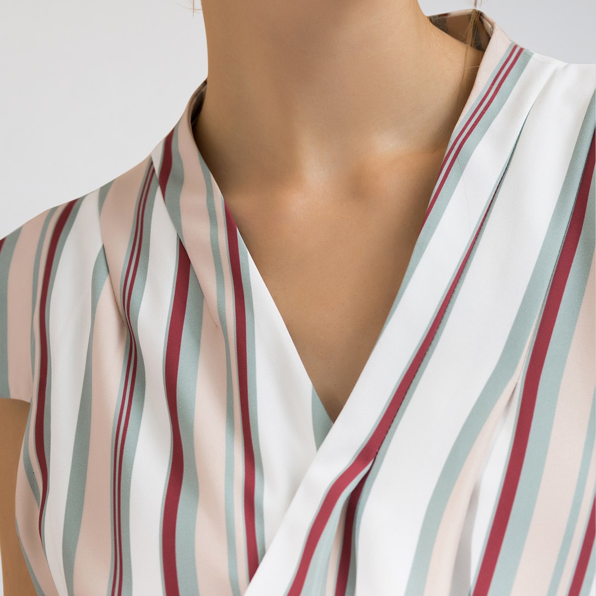 Robe courte structurée à panneaux croisés et imprimé rayures