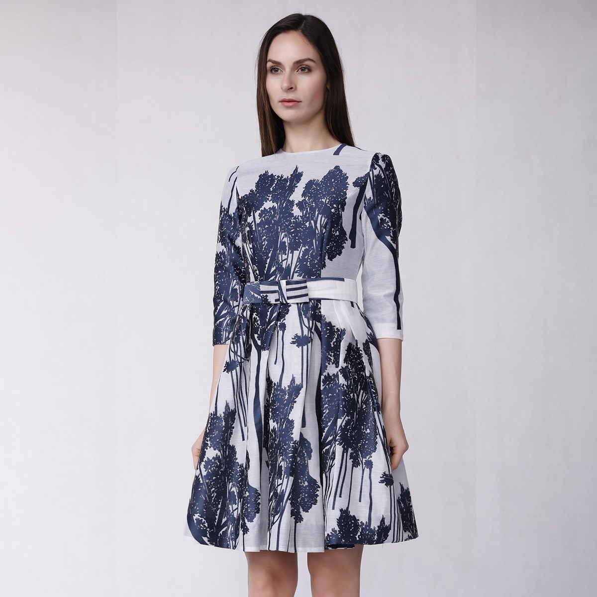 La robe féminine par excellence : coupée dans un très beau tissu rebrodé aux motifs forestiers, cette pièce offre une ligne très flatteuse pour de nombreuses silhouettes : buste ajusté, taille cintrée rehaussée d’une ceinture ajoutée, large volume de jupe accentuée par un jupon de tulle en dessous. Une ligne intemporelle et un rien retro qui assure élégance et sophistication. Convient a un style de jour et surtout à des occasions.