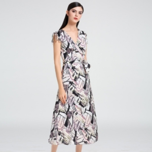 Robe portefeuille fluide imprimé géométrique