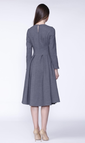Tout a été pensé dans cette robe pour souligner votre silhouette avec glamour et élégance. Buste ajusté, décolleté en V séduisant mais raisonnable et jupe évasée grâce à de larges plis creux. Fermée avec un zip métallique caché dans le dos, entièrement doublé de tissu satiné. Un tissu fantaisie jacquard argenté à texture effet tressé. Une pièce cocktail à exhiber lors de votre prochain gala ou soirée.
