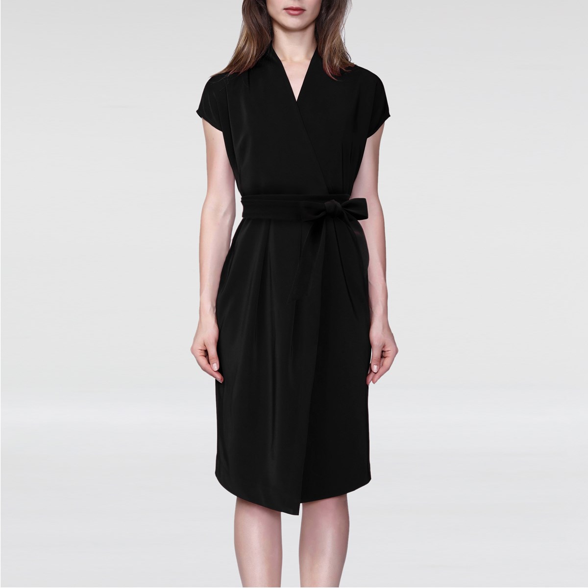 Robe mi-longue effet portefeuille et ceinture rajoutée