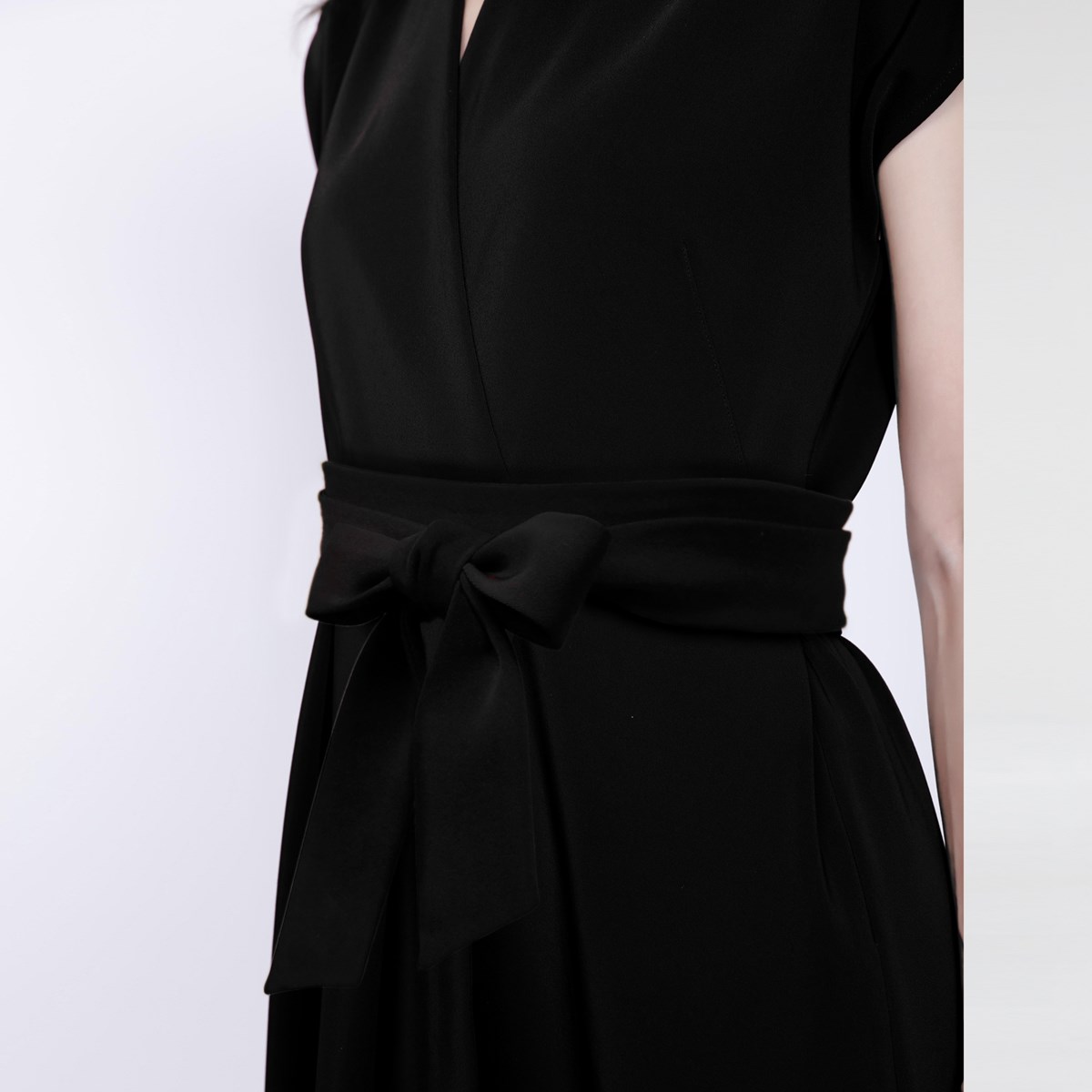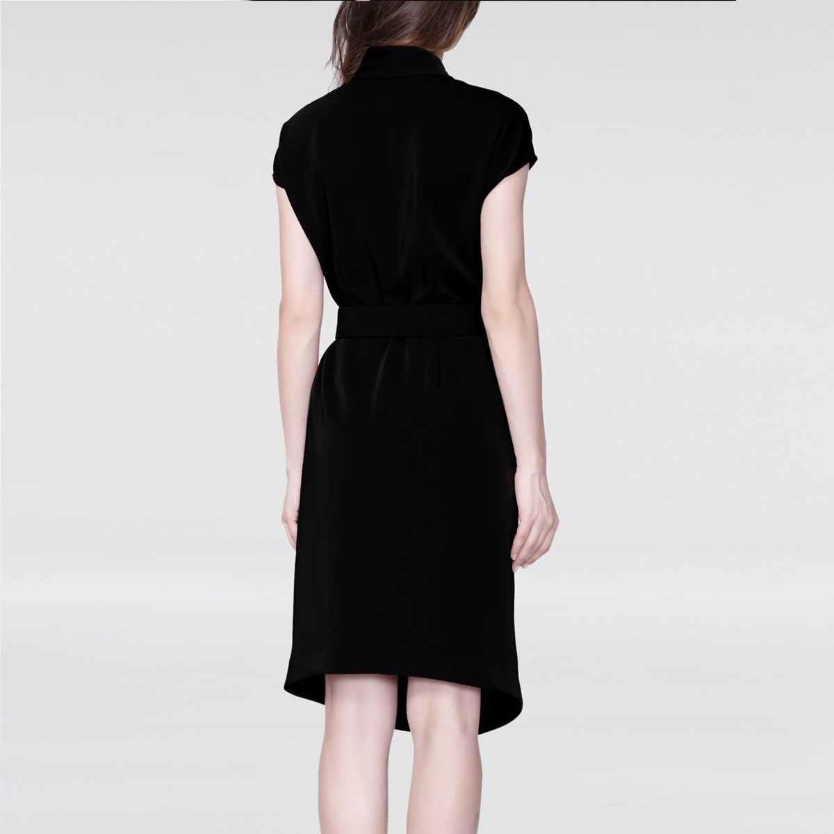 Cette robe est l’hybride parfait entre tenue de travail et de soirée. Une ligne séduisante avec le décolleté V et la fente coté-devant et toutefois très séante avec ses petites manchettes et sa longueur cachant le genou. Un effet visuel Cache-Coeur avec une fermeture par zip au côté et une ceinture ajoutée pour cintrer encore plus la taille. Une valeur sûre et une coupe dynamique et intemporelle.
