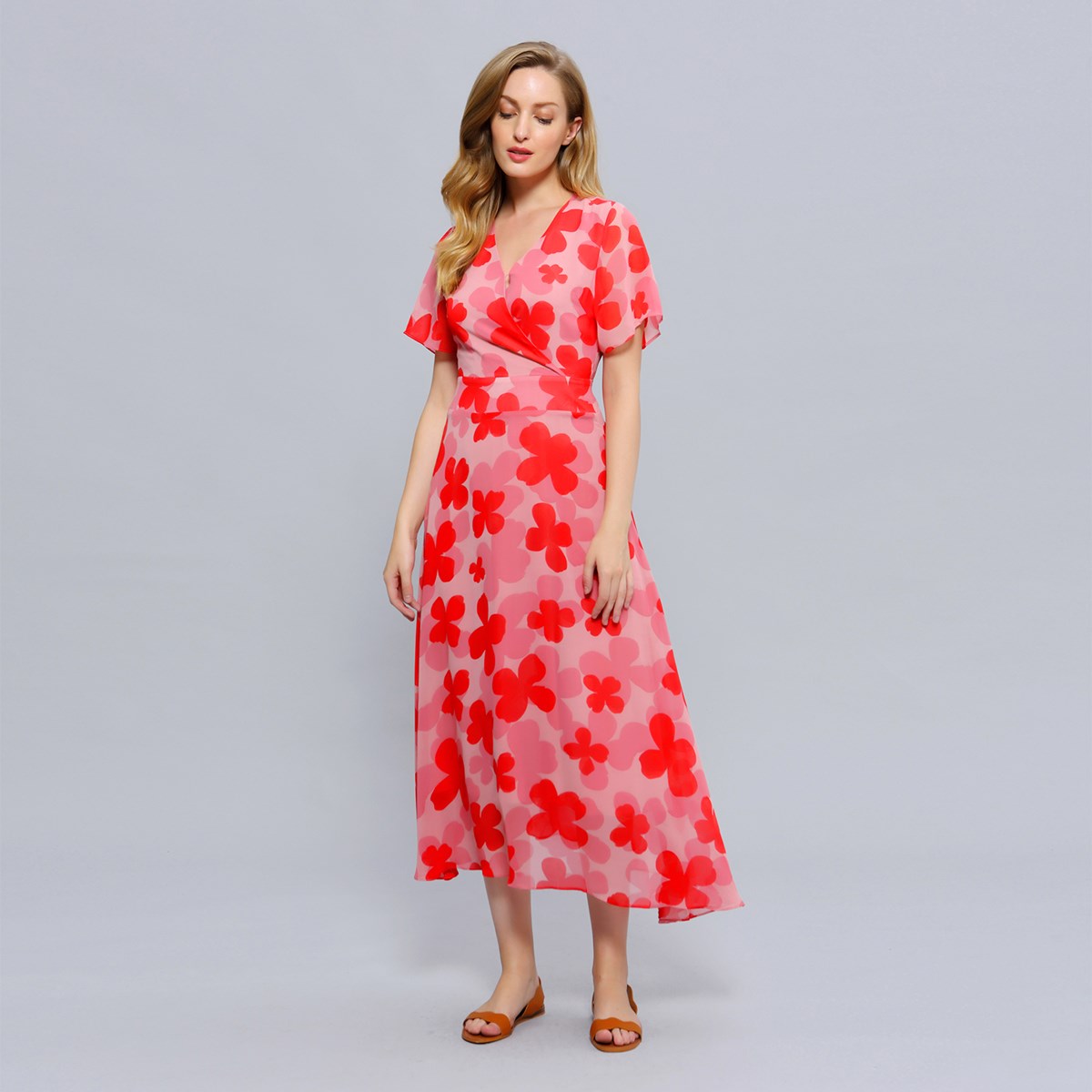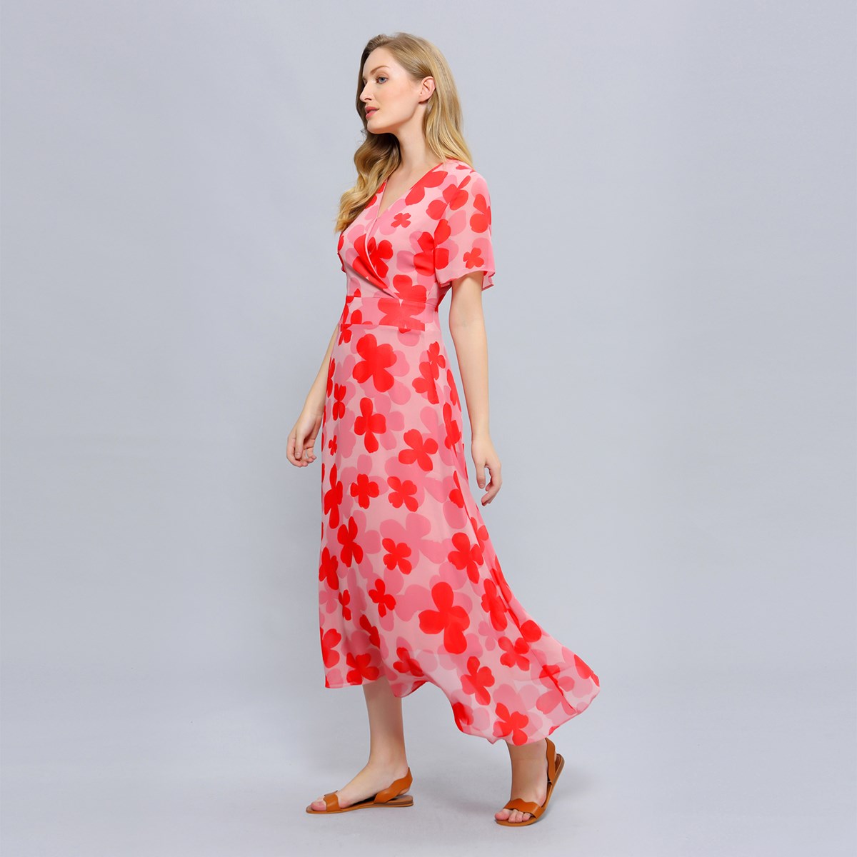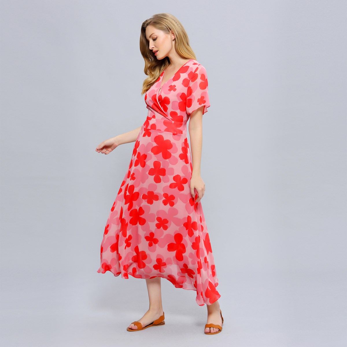 Robe cocktail ajustée manches longues plissées
