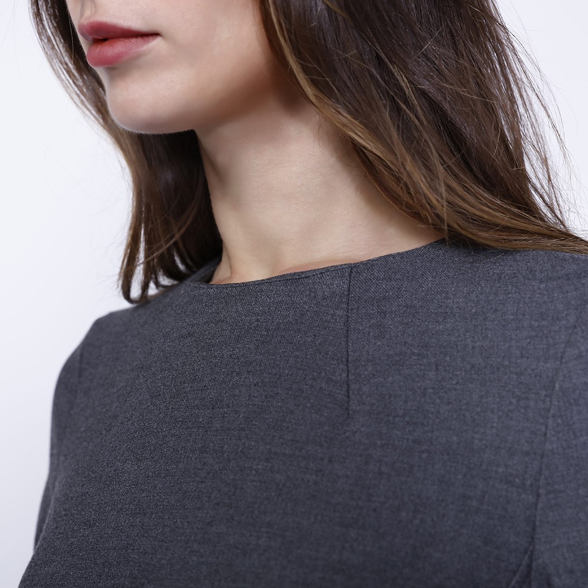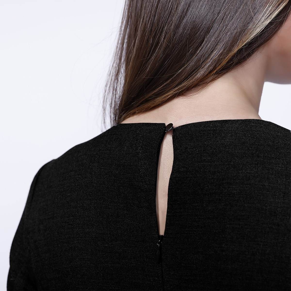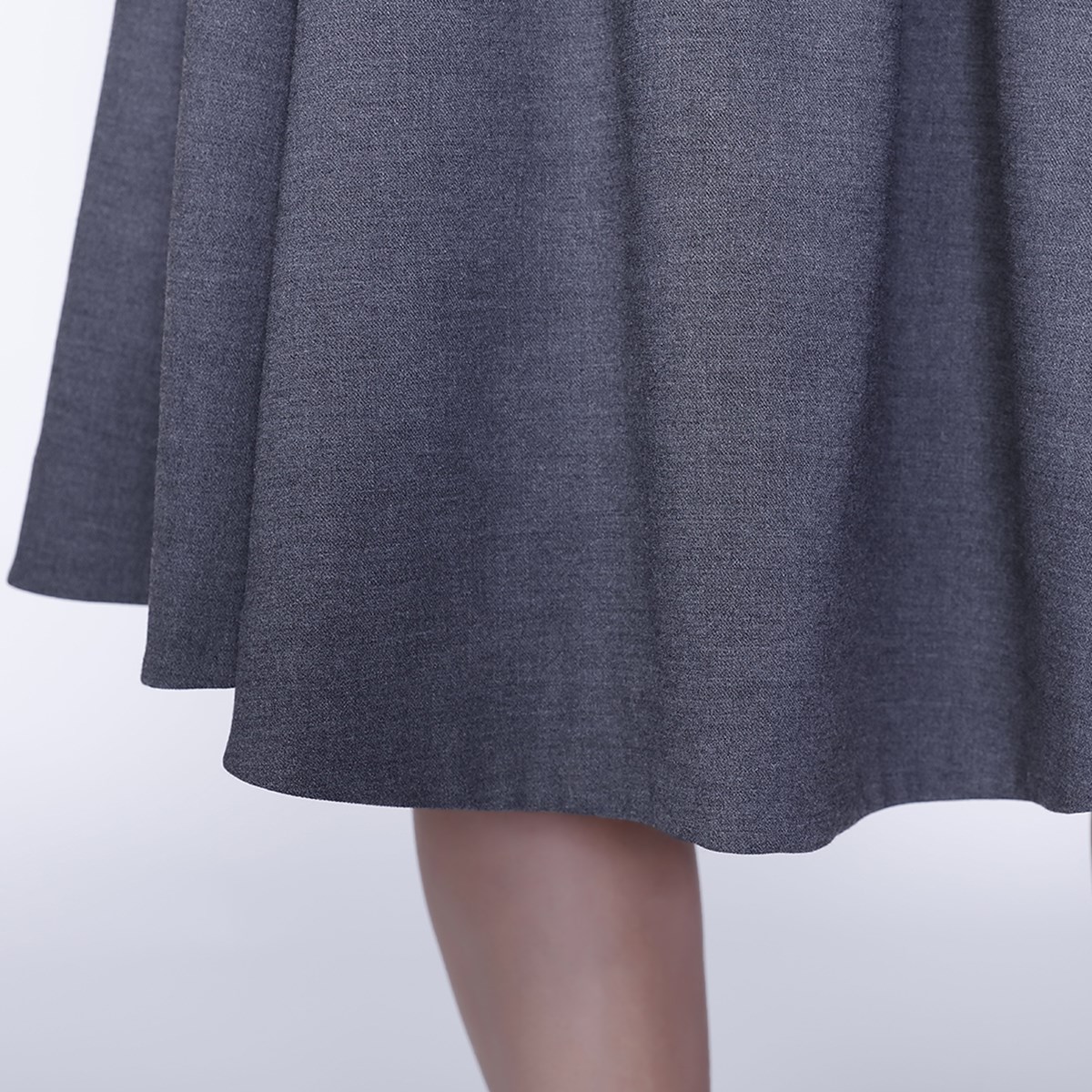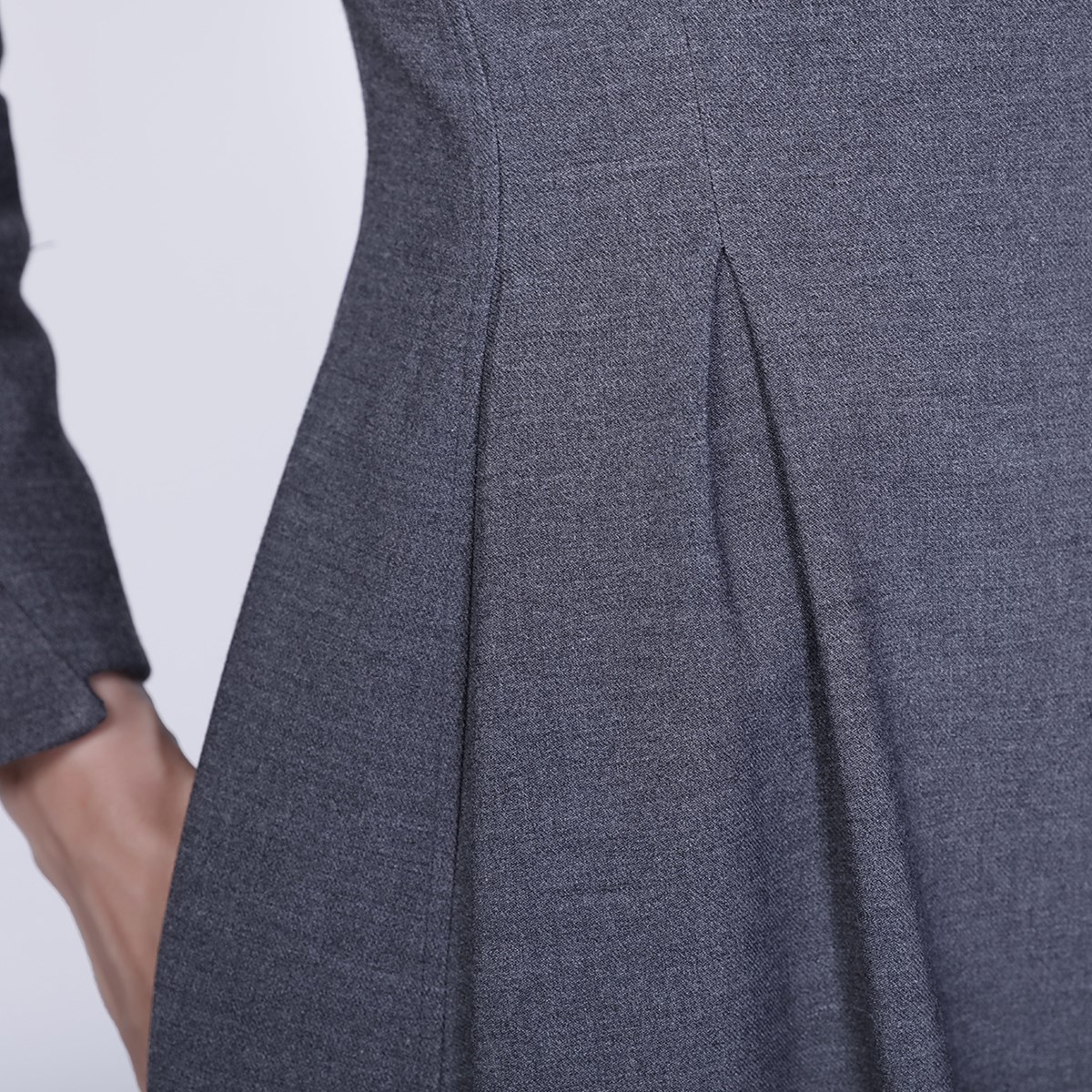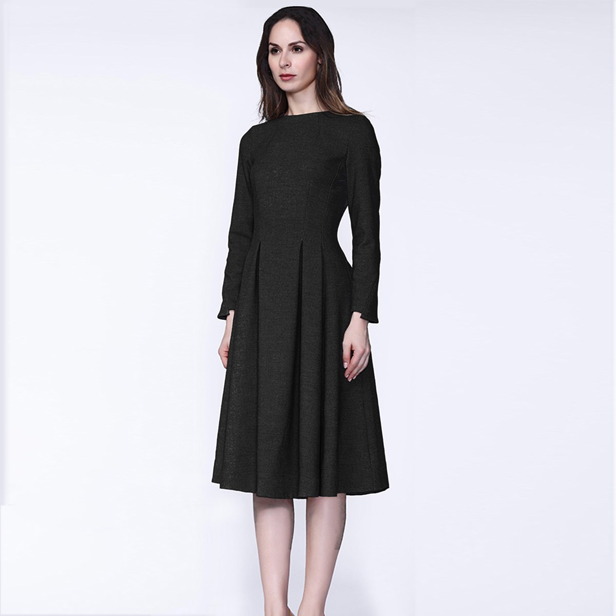 Une coupe intemporelle qui reste une valeur sûre au cours des saisons, cette robe met élégamment en valeur la silhouette : buste et taille cintrés, jupe a large volume, poches côtés, manches longues.  Parfaite pour une tenue de bureau, elle convient également à une pièce de sortie.