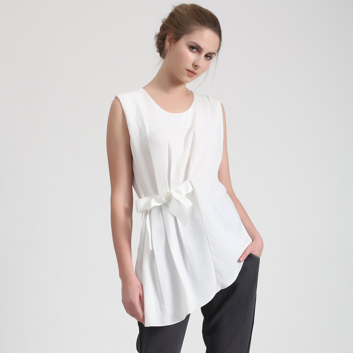 Cette pièce présente des plis drapés au côté droit et resserrés par un “”gros grain”” pour ajuster la coupe à votre convenance. La flanelle légère et respirante le rend parfait à porter les jours les plus chauds de l’été. Coupe plongeant sur le côté. Un top sans effort que vous pouvez associer à votre jean pour un look décontracté ainsi qu’à un pantalon formel pour aller au travail. Un article élégant et intemporel.
