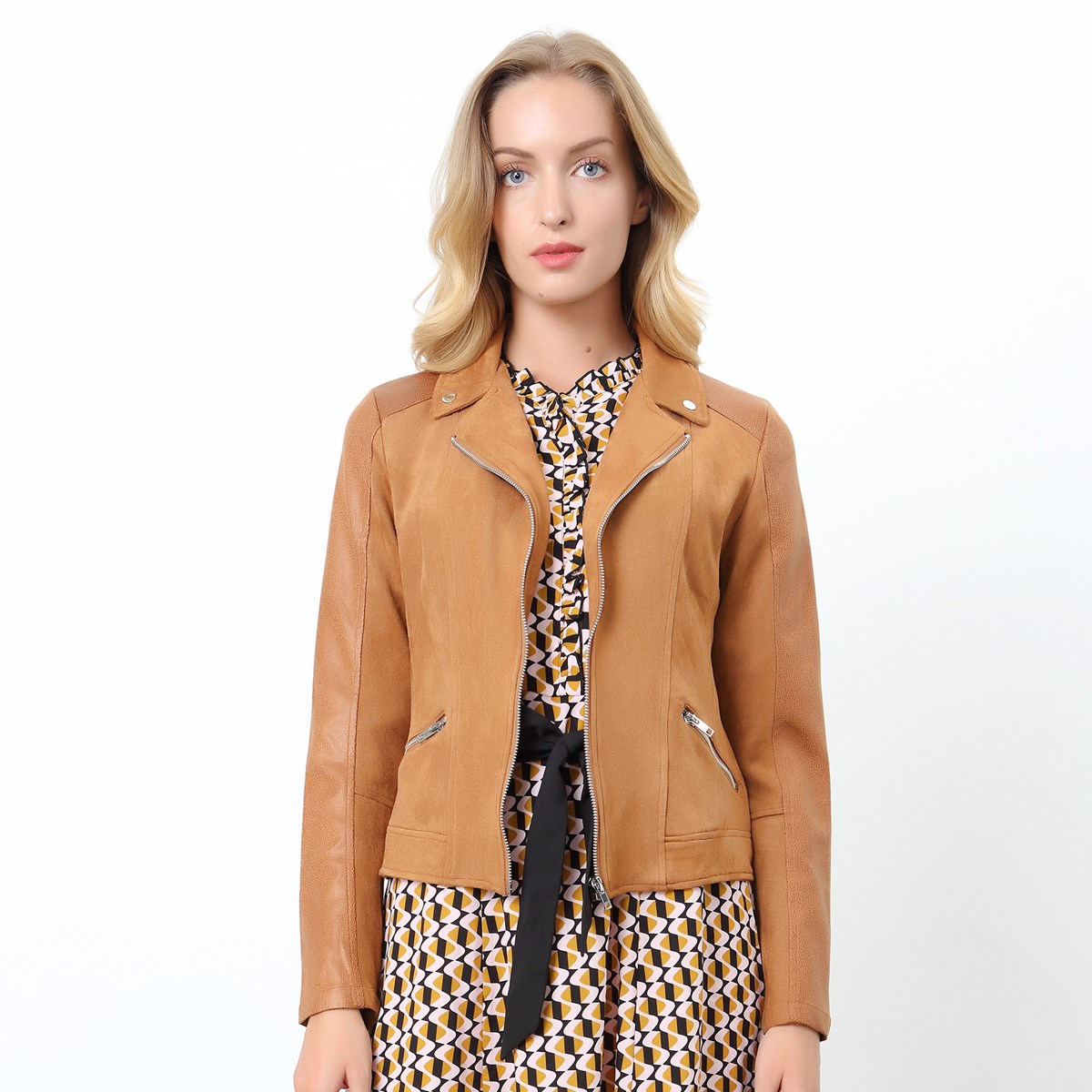 Veste courte bi-matières, style perfecto zippée sur le devant