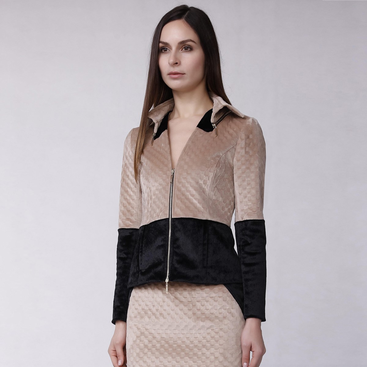 Une vraie pièce de style, cette veste se compose d’un faux crin noir et d’un velours texturé. Très pratique avec le zip devant, et originale par le col détachable par un zip également, elle présente une coupe ajustée. Un look dynamique et élégant qui se complète avec notre « Jupe droite bi-matière ».Détails produitForme ajustéeLongueur : 60 cm / Le modèle mesure 1m77 et porte une taille 38Zip milieu devantManches longuesCol chemise détachable